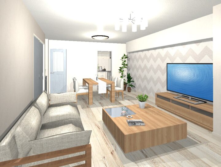 イメージパース 2021.01.08 リラックス感のあるナチュラルなマンション/イメージパース マンションのイメージパースを作成しました ブルーペイントの優しい色味の建具やグレイッシュな内装で、リラックス感のある空間をイメージしました。 ■LDK ■キッチン ■洋室1 ■洋室2 ■トイレ