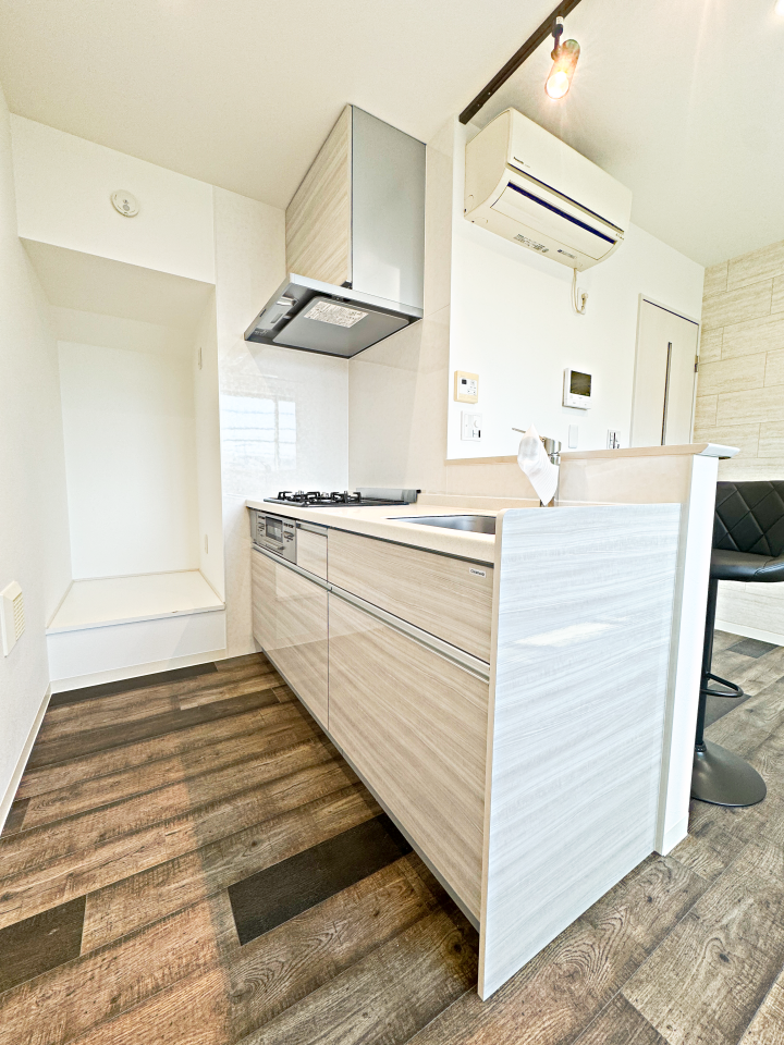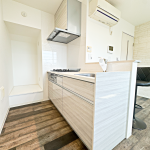 キッチン幅を大きくし、カウンターを設けることで、開放的なキッチンに変身しました。