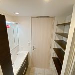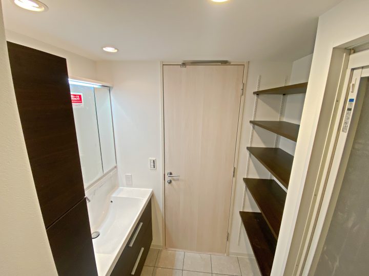 洗面台の後ろにも稼働棚を設置しました。高さを自由に変更できるだけでなく洗面室でよく使用するタオルなどをワンアクションで出し入れができるのはとても嬉しいですね!収納方法によって印象もかなり変わります♪