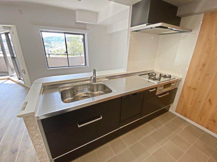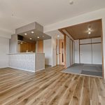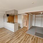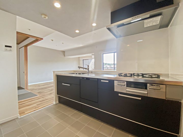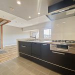 隣の和室とも調和するモダンでどこか和風な雰囲気も感じさせるキッチン空間が完成しました!