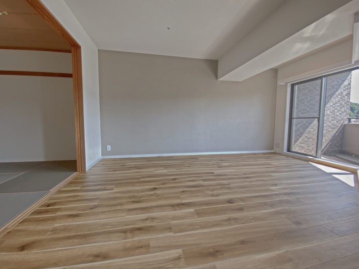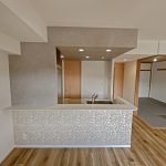 築23年のマンションのフルリフォームを行いました。以前のキッチンは独立型でシンク上の辺りに開口部はあるものの閉塞的なキッチンでした。今回垂れ壁や吊戸棚を取り払ったことでとても開放的になりました。キッチンの天井部分は石目調のクロスを施し変化をもたせることでより現代風な印象に♪和室は落ち着いたカラーの畳に貼替え、ナチュラルなリビングとも調和する和モダンな空間になりました。建具などは既存の物ですが全体的にまとまりのあるナチュラルモダンなフルリフォームとなりました。