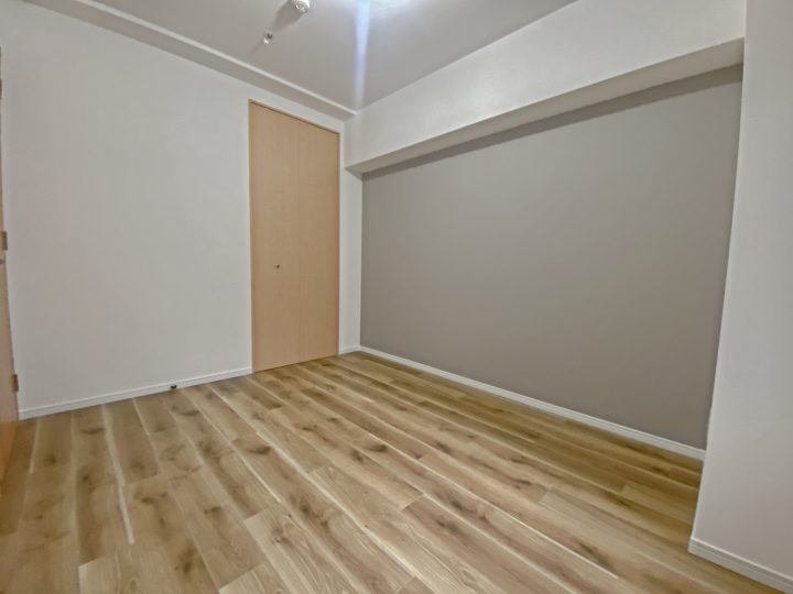 アクセントにはグレーのクロス サンゲツSP-2564を使用し和室やキッチンと統一感をもたせました。コンクリートの質感を表現したクールなデザインのクロスです。