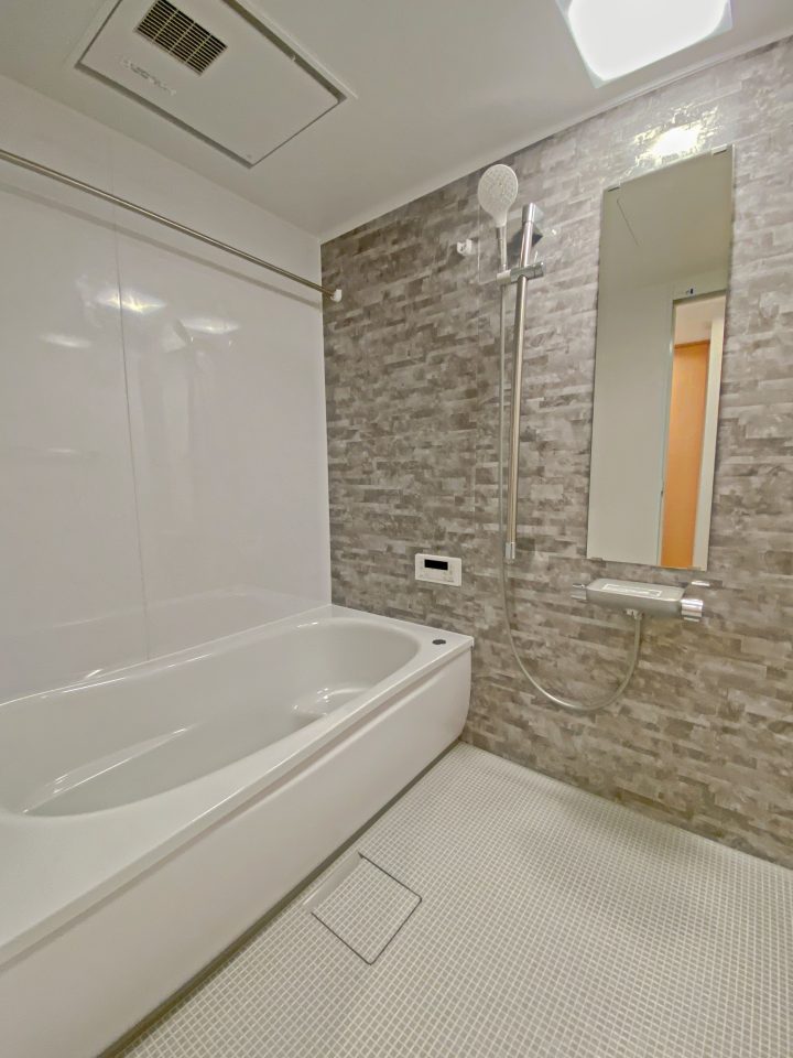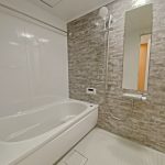 マンションリモデルバスルームWYシリーズ Kタイプ 高級感のあるクレアライトグレーのパネルを採用しました。ゆるリラ浴槽のおかげで自然とリラックスできる姿勢になります。スタイリッシュで洗礼された浴室になりました。