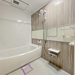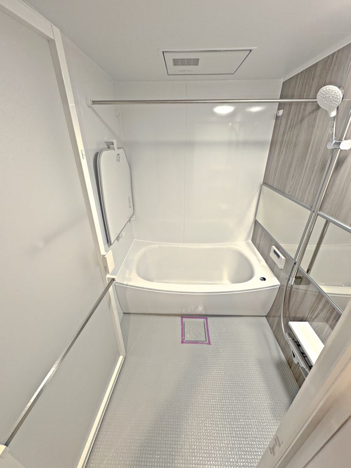 床には落ち着きのあるグレーカラーのほっカラリ床を施しました。水はけがよくお掃除やお手入れもしやすいです。クッション性がありW断熱効果で冬場もヒヤッとせず快適なバスタイムをすごせます。