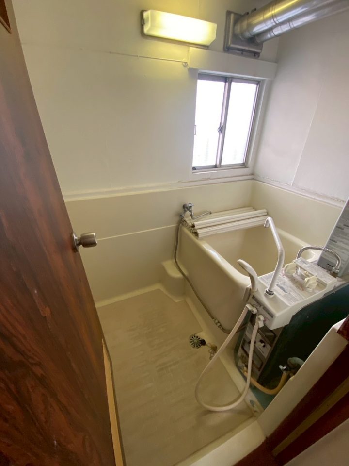 以前の浴室はバランス釜で浴槽は深く狭い印象です。