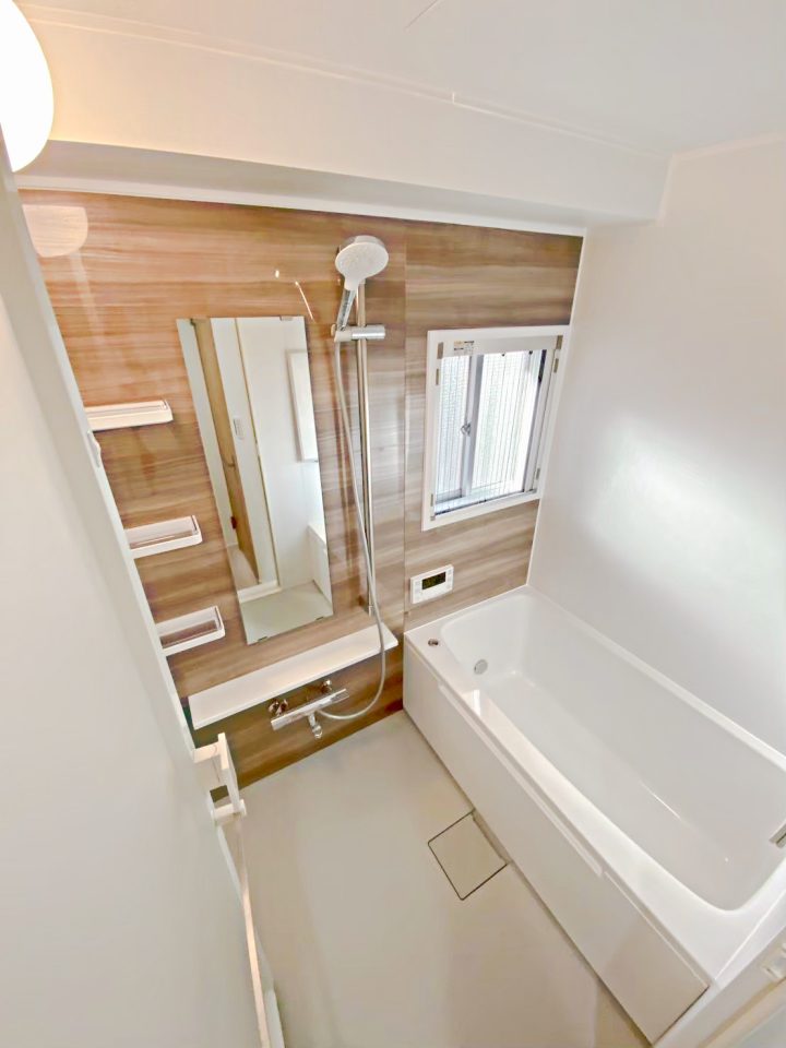 マンションリモデルバスルームWSシリーズ Dタイプ ノルディグレーウッドを採用し快適なバスルームに大変身しました。以前より浴槽も広くなり癒しの空間を実現♪パネルは一面に施しシンプルに。