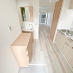 新しく下足入れを設けたことで靴や荷物を収納することができるようになりました!洗濯機置き場の新設や建具を取り払い上手くスペース活用しました。