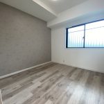 和室から洋室に変更しました。淡いグレーのアクセントクロスが落ち着きのある空間を演出します。