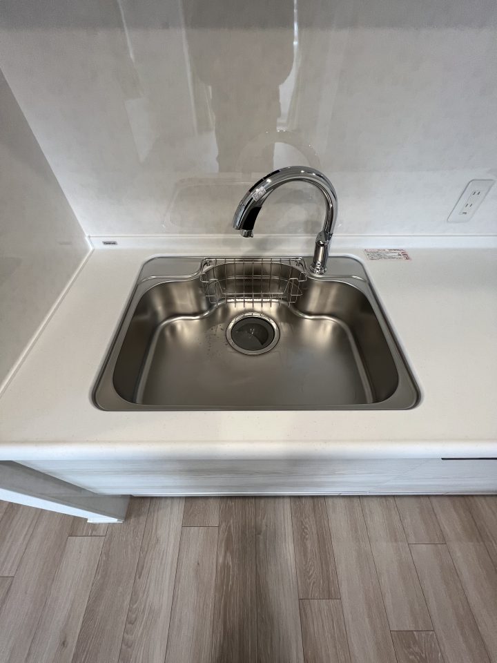 水栓はLIXIL製のタッチレス水栓。触れる必要がないため水栓が汚れず、清潔に保つことができます。