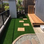 ワンちゃんの為に毛の長さが少し長めの40ミリの芝を採用しました。グリーンのおかげで、以前よりも外構の全体的な印象が明るくなりました。